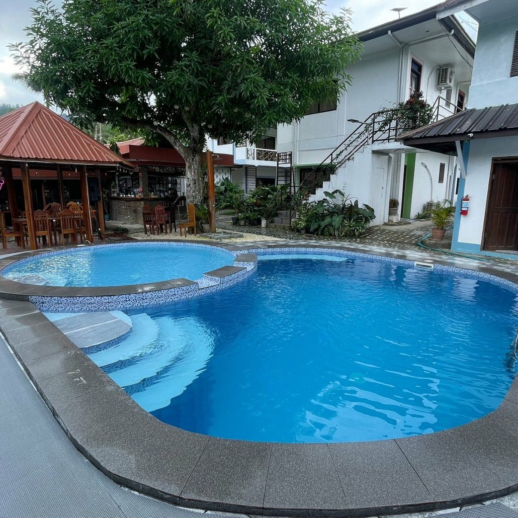 Établissement 3 étoiles apprécié pour son calme et son jardin tropical soigné qui abrite une piscine extérieure, un équipement appréciable dans la région. L’hôtel dispose d’une vingtaine de chambres (Superior, Deluxe, Familiale) spacieuses, propres et dotées de la climatisation, d’un coffre-fort ainsi que d’une terrasse ou d’un balcon. Le restaurant sur place propose une cuisine variée, incluant des spécialités philippines et suisses, et le petit-déjeuner est souvent salué par les visiteurs. Bien qu’il ne soit pas en front de mer direct, sa localisation centrale et son confort en font une option « valeur sûre » pour les couples et les familles.